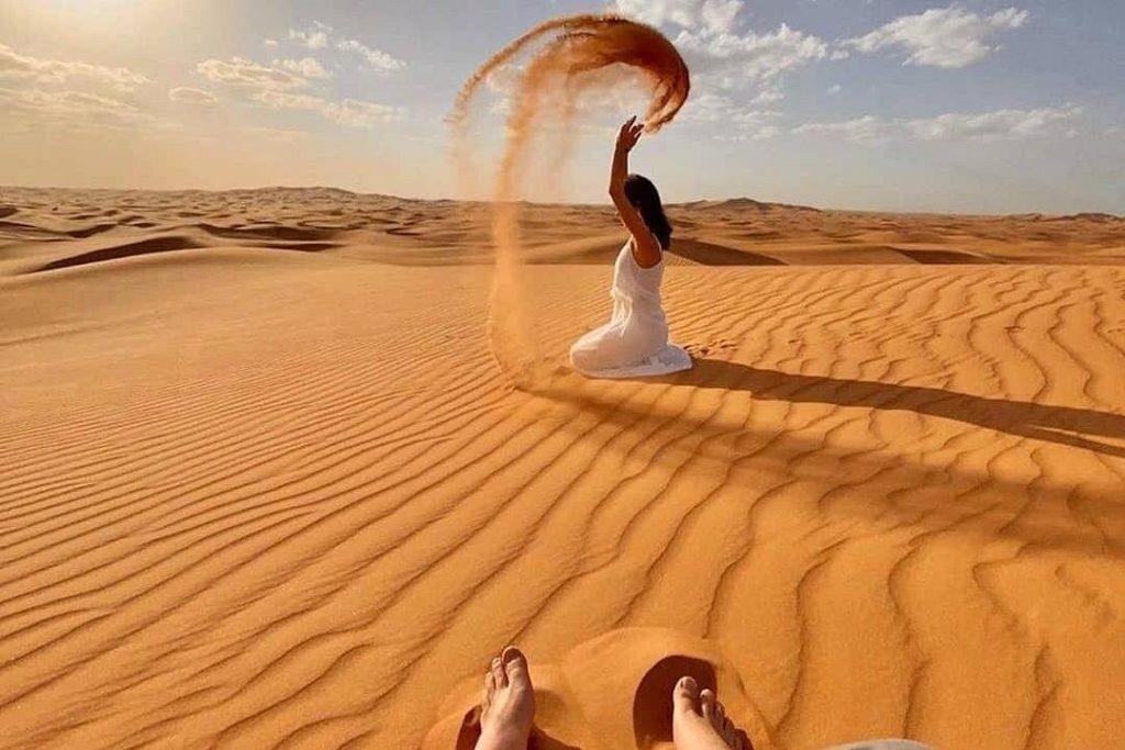 Experience the real Red Dunes of Lahbab with trained, insured guides. Enjoy dune bashing, camel rides, sandboarding, and a tasty BBQ dinner with live shows—all with 4×4 hotel pickup for comfort and safety.