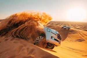 A desert safari in Dubai is a 4-6 hour adventure into the Arabian desert that includes dune bashing, camel riding, BBQ dinner, live shows, and more.